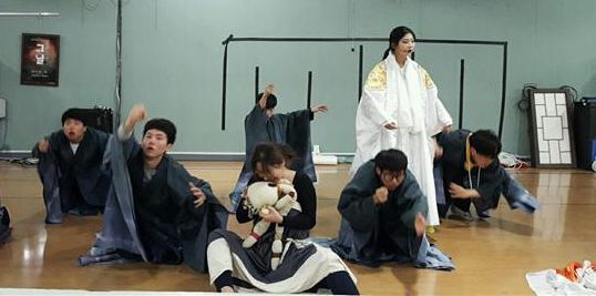 ▲ 극단 황토 단원들이 ‘태’ 공연 연습을 하고 있다.