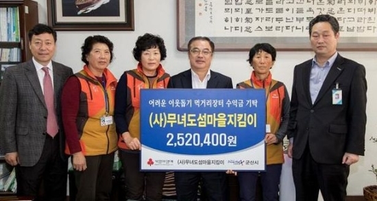 (사)무녀도섬마을지킴이(회장 육영인)는 15일 마을 자체 내 ‘어려운 이웃돕기 먹거리 장터’를 운영해 마련한 수익금 252만원을 이웃돕기 성금으로 써 달라며 군산시에 전달했다.