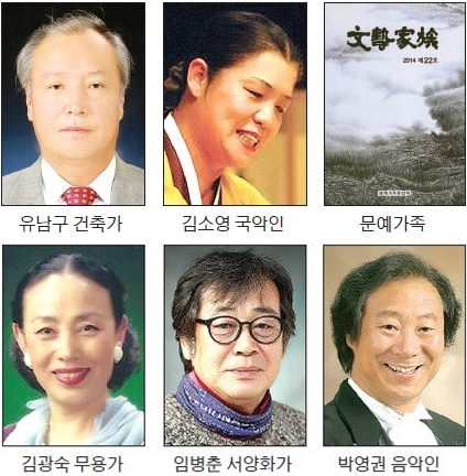 공로상은 정경선(47) 연극인, 강명선(47) 무용가, 안영(61) 시인, 김은영(52) 음악인, 김순흥(64) 서예가, 이용미(64) 수필가 등 6명이 수상한다.