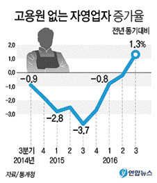 고용원이 없는 영세 자영업자 수는 2013년 1분기 0.5% 증가한 뒤 2∼3% 내외의 꾸준한 감소세를 유지해왔다.