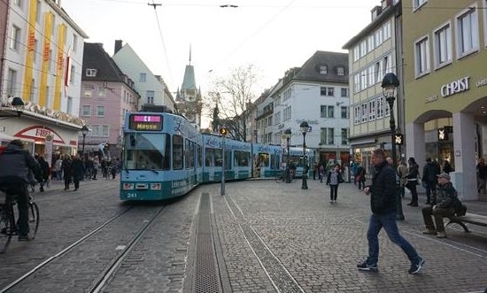프라이부르크 중심가에서는 뮌스터 대성당을 중심으로 반경 1.5km 구간에 자동차가 진입할 수 없다. 대신 친환경 대중교통 수단인 트램이 쉼 없이 오가며 시민의 발 역할을 톡톡히 해내고 있다.