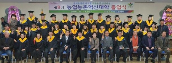 군은 이날 황숙주 군수와 혁신대학 졸업생과 가족 등 100여명이 참석한 가운데 농업기술센터 강당에서 제9기 농업농촌혁신대학 졸업식을 가졌다.
