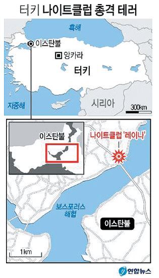 1일(현지시간) AP·AFP통신 등에 따르면 이날 새벽 산타 복장을 한 괴한 2명이 이스탄불의 번화가 오르타쾨이의 유명 나이트클럽 ‘레이나’에 들이닥쳐 장총을 난사해 연말연시 연휴를 즐기던 최소 35명이 숨지고 40명이 다쳤다.
