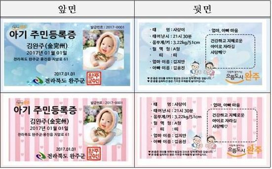완주군 올해부터 신생아 주민등록증 발급