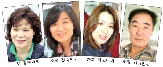 시 정연희씨 "늦둥이 딸에게 멋진 선물 안겨" / 소설 정숙인씨 "소설가 타이틀 얻어 마냥 감사 " / 동화 최고나씨 "여동생도 본보 신춘문예 출신" / 수필 허정진씨 "인생 힘 돼준 글쓰기 계속 정진"