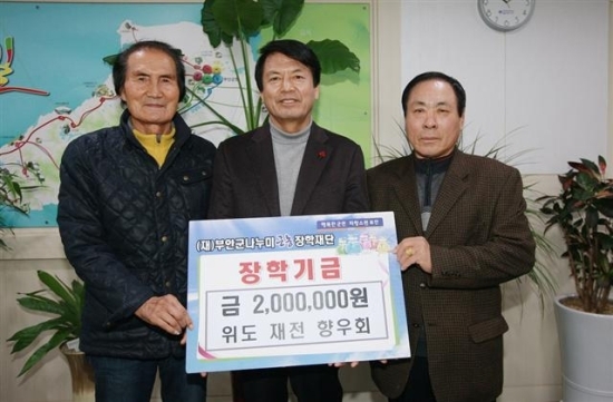 전주에 거주하고 있는 위도면 출신 30명으로 구성된 위도 재전 향우회 김종남 회장은 “올해부터 대학 신입생 1학기 반값등록금을 시행한다는 소식을 전해 듣고 동참하고자 회원들이 한마음 한뜻으로 자율 모금하게 됐다”며 “고향의 아이들이 맘껏 꿈을 펼치는데 작은 금액이지만 보탬이 됐으면 한다”고 기탁배경을 설명했다.