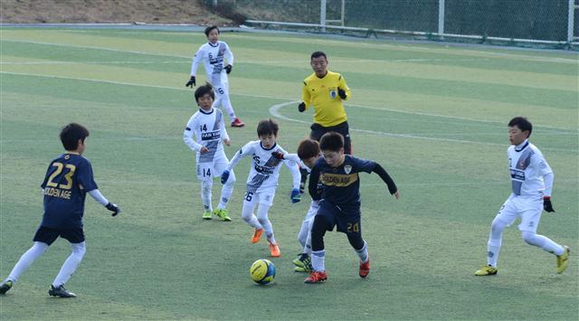 ▲ 남원시가 겨울철 전지훈련지로 주목받고 있는 가운데, 유소년 축구팀 선수들이 연습경기에 집중하고 있다.