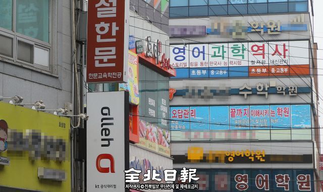 한편 전북도교육청이 밝힌 도내 학원 현황에 따르면 전주가 2138곳으로 가장 많고, 익산(692곳), 군산(601곳), 정읍(210곳), 남원(129곳), 완주(118곳), 김제(95곳), 부안(56곳), 고창(54곳), 순창(20곳), 임실(18곳), 무주(15곳), 무주(14곳), 진안(9곳) 등의 순이었다.