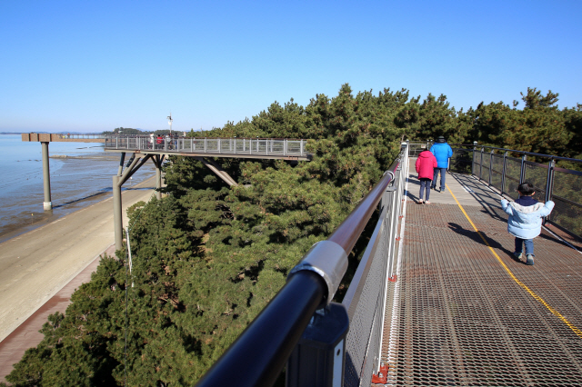 송림산림욕장 안에는 ‘장항 스카이워크’라 불리는 ‘기벌포해전 전망대’가 자리잡고 있다. 기벌포해전은 문무왕 때(676년) 신라 해군이 기벌포에서 당나라 해군을 크게 이긴 전투이며 스카이워크에서 정면으로 보이는 장항 앞바다가 바로 기벌포 해전이 벌어진 곳이다. 높이 15m, 길이 250m의 스카이워크에 오르면 탁 트인 시야는 물론 그저 높게만 보였던 해송들이 어깨를 나란히 한다. 높이 탓에 긴장할 수도 있지만 넓은 바다와 푸른 하늘을 보며 잠시나마 자유를 만끽할 수 있다. 또 스카이워크 중간 중간에는 솔숲을 내려다 볼 수 있도록 하는 발판이 연결돼 있어 마치 공중에 떠가는 느낌도 받을 수 있다.