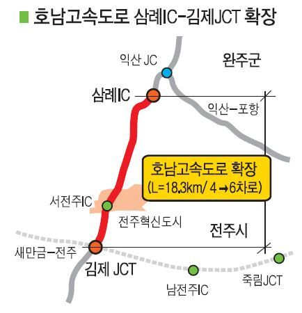 삼례와 김제를 잇는 호남고속도로 구간이 확장된다.