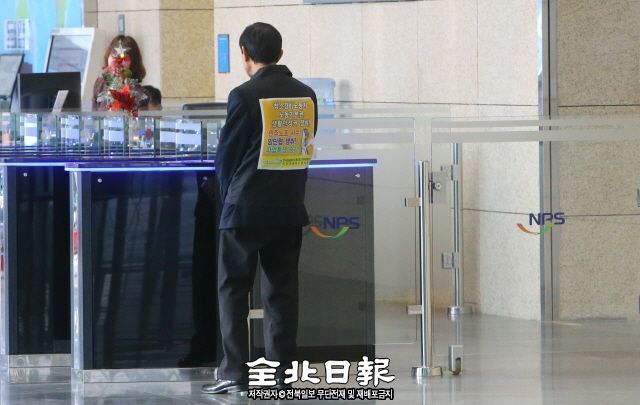 전북혁신도시 내 국민연금공단 본사와 계약된 하청업체에서 일하는 경비원 A씨가 한숨을 내쉬며 이렇게 말했다. 다니던 직장을 정년 퇴임하고 예순을 훌쩍 넘긴 나이에 경비원이 된 A씨는 “청사 로비에 2명이 근무하는데, 의자가 하나밖에 없다”며 “노조에 가입했다는 이유로 회사(하청업체)측에서 의자 하나를 빼 버린 것이나 다름없다”고 주장했다.