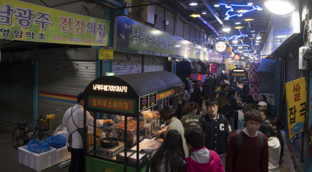 남광주시장의 야식 투어를 하고 싶다면 잠시 기다려야 한다. 설 명절을 맞아 시민들이 원활하게 장을 볼 수 있도록 3주간 임시 휴장에 들어갔다. 남광주밤기차 夜시장은 다음달 3일 재개장할 예정이다.