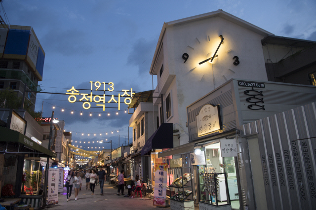 소상공인시장진흥공단, 광주창조경제혁신센터, 현대카드가 전통시장 활성화 프로젝트에 나서 빈 점포 10곳을 리모델링한 게 ‘1913송정역시장’의 시작이다. 창업 공간과 컨설팅 교육 등을 제공 받은 청년 상인들이 신선한 아이디어로 잠자던 시장에 온기를 불어넣었다.