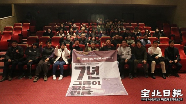 최근 개봉한 다큐멘터리 영화 ‘7년-그들이 없는 언론’의 상영회 및 관객과의 대화가 지난 20일 전주디지털독립영화관에서 열렸다. 전북민주언론시민연합, 전주시민미디어센터가 주최한 행사로, 영화 제작진과 시민들이 영화를 보고 ‘바른 언론이 나아가야 할 방향’에 대한 이야기를 나누기 위해 마련됐다.