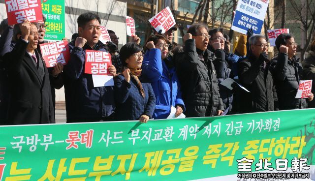 이어 “국방부가 성주 롯데 골프장을 사드 배치 최종 부지로 결정하는 전후 과정에 여러 의혹이 제기되고 있다”며 “롯데는 지금이라도 한반도의 평화와 한국경제의 발전 및 사드부지 관련 불법 특혜의혹을 씻기 위해 성주 골프장 사드부지교환 계약 추진을 중단해야 한다”고 주장했다.