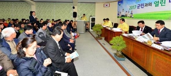‘군민과의 열린 대화’에 참여한 주민들은 군에 바라는 점과 당면 현안 등 300여 건의 건의사항을 제시했으며 군은 담당 부서별 현장 확인과 지속적인 관리, 후속조치로 문제를 해결해 나가기로 했다.