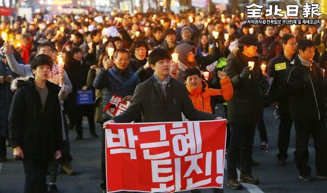 4일 전주시 관통로 차 없는 거리에서 열린 제12차 전북도민 총궐기에는 700여 명의 도민이 참석해 촛불을 들고 거리를 행진하며 박근혜 대통령의 탄핵을 촉구했다.