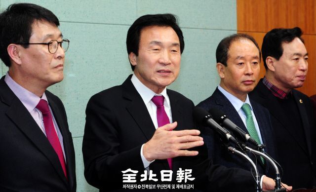 ▲ 7일 손학규 국민주권개혁회의 의장이 국민의당과 통합 발표 후 전북을 찾아 도의회 브리핑룸에서 기자회견을 하고 있다. 안봉주 기자