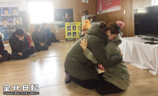 전주 세월호 현수막 지킴이 등 43명 현장 방문 / 실종자 가족들, 3월 인양 시작만 기다리며 기도