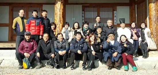 ▲ 순창 동계면 주민자치위원들이 쌍치 훈몽재를 방문해 기념촬영을 하고 있다.