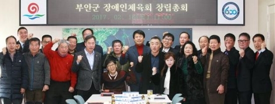 부안군 장애인체육회(회장 김종규)가 16일 오전 11시 부안군청 3층 회의실에서 대의원 및 관계자 등 20여명이 참석한 가운데 창립총회를 열고 출범했다.이날 창립총회에서는 장애인체육회 규정에 따라 당연직 회장으로 김종규 부안군수가 선임됐으며 부회장과 이사는 회장에게 선임을 위임했고 2017년 사업계획 및 예산승인, 사무국 운영 등에 대해 심의·의결했다.