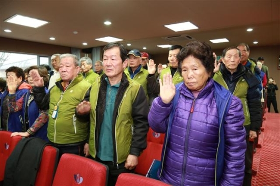 황정수 군수와 유송열 군 의회 의장을 비롯한 사업 참여자 등 140여 명의 참석자들은 기념식과 참여자 대표 선서문 낭독, 전국웃음노리치유협회 권수영 회장이 진행하는 ‘“즐거운 일터 만들기’ 특강과 낙상안전교육, 일자리 관련 간담회 등에 함께 했다.