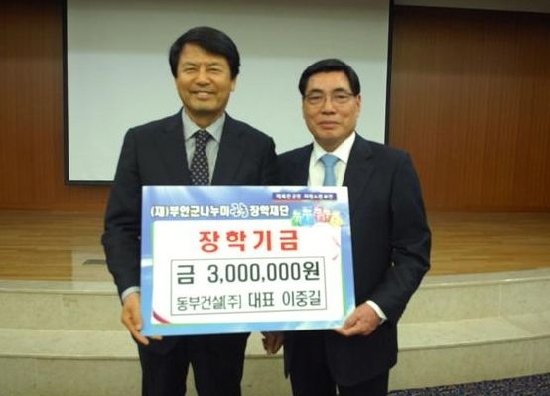 동부건설 이중길 대표는 “작은 금액이지만 지역의 인재를 키우는 데 조금이라도 보탬이 됐으면 한다”고 기탁배경을 설명했다.