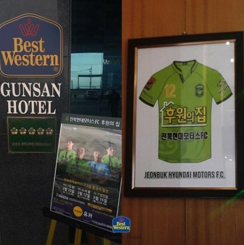 ▲ 전북현대 후원의 집인 베스트 웨스턴 호텔 군산의 입구에 비치된 구단의 홍보물들.