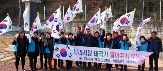 김제시 재향군인회(회장 박영봉)는 지난달 27일 3·1절을 맞아 금산면 원평장터 만세기념탑에서 범시민 나라사랑 태극기 무료보급 및 달아주기 행사를 전개했다.