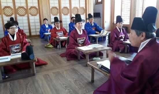 ▲ 완주군은 7일 완주 전통문화체험장에서 조선시대 전통 관복의상을 착용하고 문화관광해설사 교육을 실시했다.