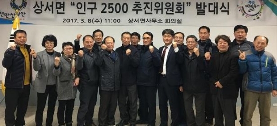 인구 2500 추진위원회는 지속적으로 감소하는 상서면 인구의 심각성을 민관이 함께 공감하고 대처해 나가기 위하여 리별대표 7명과 사회단체장 8명 등 총 15명의 위원으로 구성되었다.
