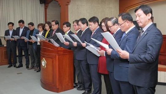▲ 9일 개회한 김제시의회 제 207회 임시회에서 시의원들이 지방분권 실현을 위한 제도적 개선을 촉구하고 있다.