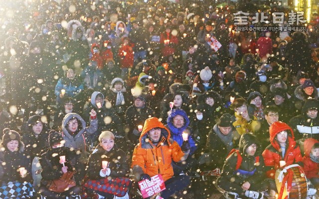 지난해 11월 29일 박근혜 전 대통령의 제3차 대국민담화를 보고 진정성 없는 사과에 분노한 민심은 더 많은 촛불을 들고 거리로 뛰쳐나왔다. 12월 3일 열린 제4차 전북도민 총궐기에는 전북 집회 사상 최다로 기록된 2만5000여 명의 도민이 참가해 자리를 메웠다.