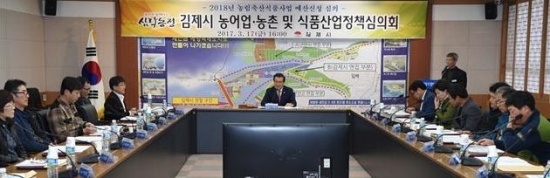 김제시는 지난 17일 상황실에서 이건식 시장을 비롯 농어업·농촌 및 식품산업정책심의위원, 관련 공무원 등 40여명이 참석한 가운데 ‘2018년도 농림축산식품산업 예산신청을 위한 정책심의회’를 개최했다.