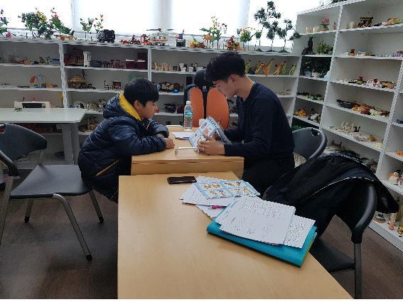▲ 부안군 드림스타트 관계자가 아동을 대상으로 언어발달검사를 하고 있다.