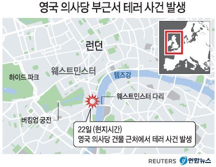 현장에 있던 관광객들의 설명과 외신을 종합해보면 당일 오후 2시40분께 범인이모는 승용차 한 대가 런던 중심부 의사당 인근 웨스트민스터 다리의 인도로 돌진했다. 영국 가디언과 텔레그래프는 문제의 승용차가 현대자동차의 SUV 차량인 회색 i40라고 보도했다. 연합뉴스