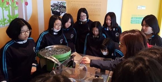 ▲ 국립김제청소년농업생명체험센터에서 진행된 자유학기제 캠프에서 학생들이 진로체험을 하고 있다.