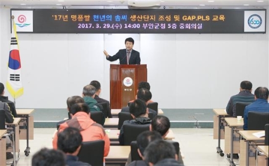 부안군은 지난 29일 군청 중회의실에서 농업인, RPC 대표, 공무원 등 100여명이 참석한 가운데 부안쌀 ‘천년의 솜씨’ 재배 전문교육을 실시했다.