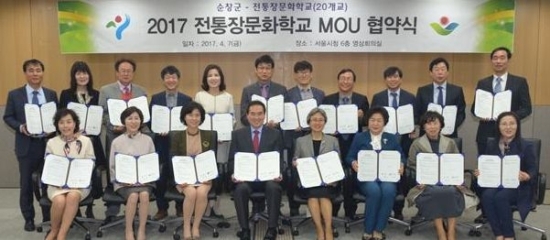 군은 지난 7일 서울시청 영상회의실에서 서울시 소재 20개 초·중학교와 전통장 문화학교 운영을 위한 MOU를 체결했다.