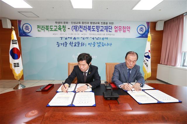 전북교육청이 11일 문화·인성교육과 평생교육 진흥을 위해 전라북도향교재단(이사장 김두봉)과 업무협약을 체결했다.