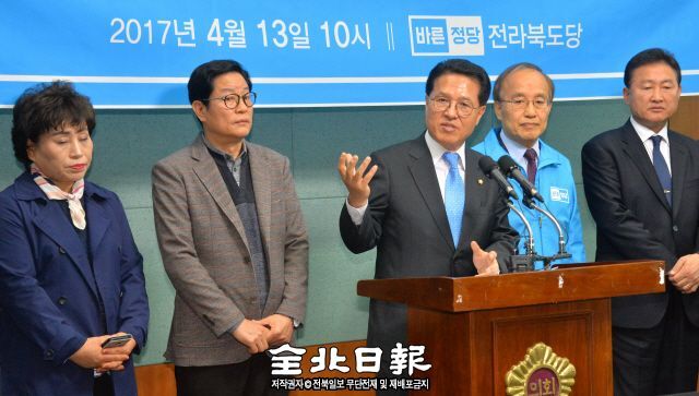 ▲ 바른정당 전북도당 선대위 출범 기자회견이 열린 13일 도의회 브리핑룸에서 정운천 도당위원장이 지지를 호소하고 있다. 박형민 기자