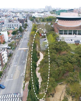 전북대가 학교 밖 인도를 캠퍼스 안으로 끌어들여 학생과 지역 주민이 함께 걷는 ‘공감터길’로 조성하고 14일 개장식을 열었다.