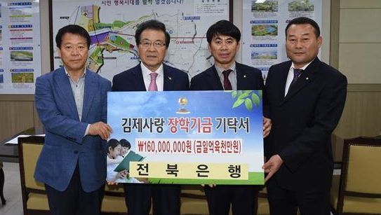 JB전북은행은 지난 2011년 부터 김제사랑장학재단 기금을 관리 하고 있으며, 지금까지 김제지역 청소년들을 위해 총 14억2000만원의 장학금을 기탁했다.