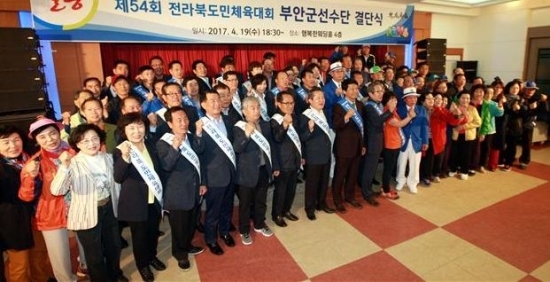 제54회 전북도민체육대회에 참가하는 부안군선수단 결단식이 지난 19일 300여명의 선수단 및 체육계 관계자들이 참석한 가운데 열렸다.
