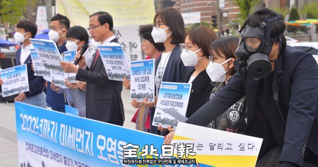 전북환경운동연합은 20일 오전 11시 전주시 전동 풍남문 광장 앞에서 기자회견을 열고 “전북도의 미세먼지 농도는 16개 시도별 평가에서 항상 상위권인데, 전방위적 미세먼지 저감 대책이 필요하다”며 “2015년 시도별 미세먼지(PM10)현황을 보면 전북은 50㎍/㎥을 기록해 전국에서 3번 째로 높은 도시라는 오명을 남기고 있다”고 밝혔다.