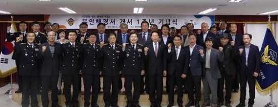 부안해경서(서장 조성철)는 지난 21일 오후 대강당에서 경찰관, 전경, 해양치안협의회 회원 등 100여명의 내·외빈이 참석한 가운데 개서 1주년 기념식을 가졌다.
