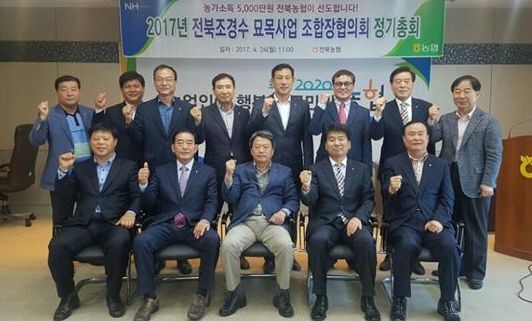 전북농협(본부장 강태호)은 조경수 묘목사업의 활력화를 위해 지난 24일 협의회 조합장 15명이 참석한 가운데 ‘2017년 전북 조경수 묘목사업 조합장 협의회 정기총회’를 개최했다.