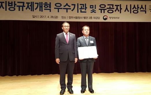 이번 평가는 전국 243개 지자체(광역 17, 기초 226)를 대상으로 2016년 한 해 동안 불합리한 규제정비 및 행태개선을 통한 규제애로 해소, 규제완화를 통한 지역 투자 기반 조성 등 지방규제개혁 사례에 대해 행정자치부 자문위원 및 외부전문가 등으로 구성된 평가단에서 실적검증과 사례별 심층면접을 통해 이뤄졌으며, (김제시는) 이와 관련 지난달 28일 정부서울청사에서 행정자치부장관 기관표창을 수상했다.