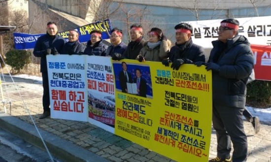지역 정치권을 비롯한 시민단체는 “선박 수주 물량을 군산조선소에 우선 배분하라”며 현대중공업 규탄 성명을 앞다퉈 발표하고 있다.