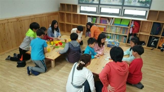 ▲ 농촌진흥청 농촌지원국 직원들이 2일 이서면 너나들이 꿈터 어린이들에게 선물세트와 상품권, 도서 등을 전달했다.
